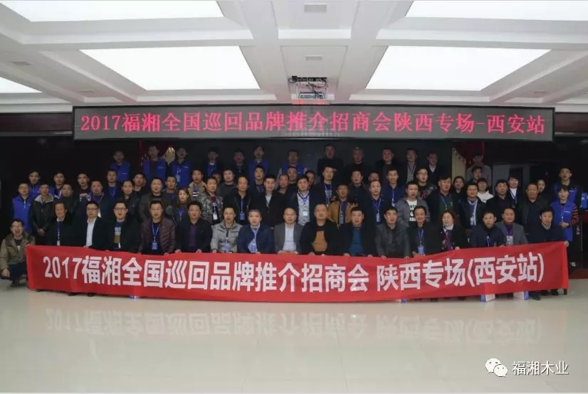 12月26日,古城西安,2017福湘全国巡回品牌推介招商会陕西专场西安站在大明宫建材城隆重举行,这是福湘营销活动冬季攻势第七场。西安大明宫建材家居股份有限公司副总经理张小伟先生、南区服务中心徐恒先生、福湘集团副总经理石波先生及其营销团队、福湘陕西运营中心负责人王腾军先生、刘八里先生、王海军先生、特邀优秀经销商代表刘乃荣先生、刘学钊先生、赫运峰先生以及来自陕西地区木业行业精英130多人齐聚盛会,福湘将携手陕西的木业界朋友们一起共创财富,筑梦未来!